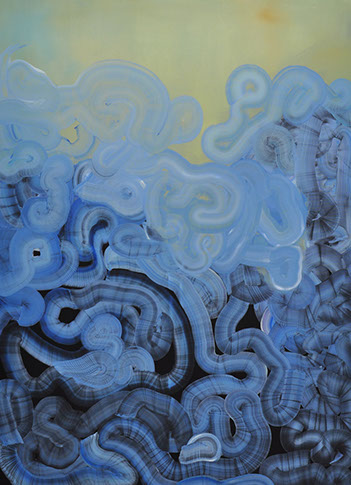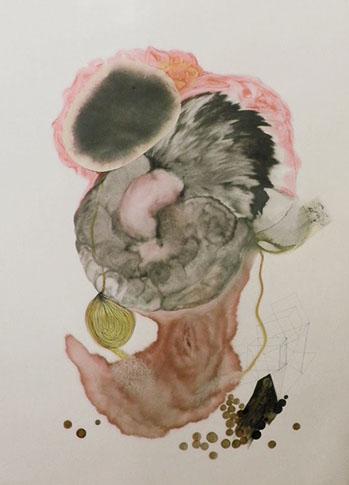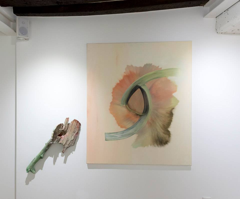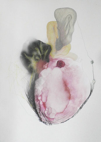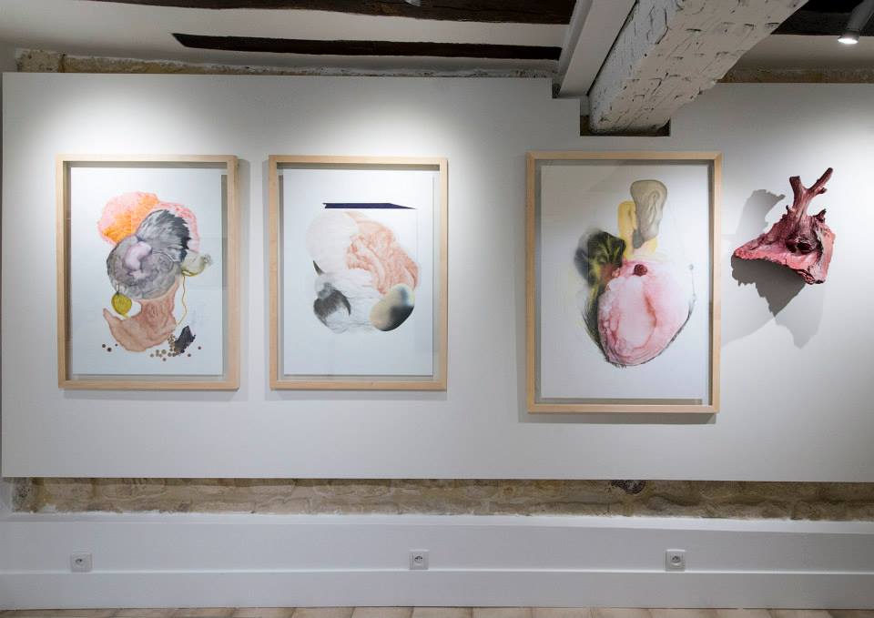 A l’occasion de l’exposition individuelle que lui consacre Jola Sidi Gallery, Dorota Buczkowska présente la dernière série de ses peintures intitulée Chatouiller le palais (2013). Dans cette série, gaie, lumineuse et charnelle, elle met à profit de façon remarquable ses compétences de restauratrice d’œuvres d’art par l’utilisation de techniques de peinture ancienne. On y retrouve ce lien ténu entre des formes construites et irréelles et la nature, aussi bien que l’état de mutation : une phase difficilement identifiable entre début de sa formation ou sa décomposition. Ses tableaux sont accompagnés aussi de quelques dessins et collages de la série Écosystème (2013-2014) dans laquelle l’artiste puise dans son œuvre en « recyclant » ses anciens travaux. Telles des planches arrachées à une encyclopédie imaginaire des sciences naturelles, elles représentent des organismes mutants et difformes ou bien une substance fluide, brillante et velue par endroits, mais toujours embellies par le geste gracile de l’artiste. L’aspect organique et mutant de ces dessins est obtenu grâce à l’idée insolite de l’artiste d’utiliser du maquillage qui imbibe progressivement le papier laissant le temps faire resurgir l’inattendu, taches de graisse donnant au papier la texture d’une peau translucide…