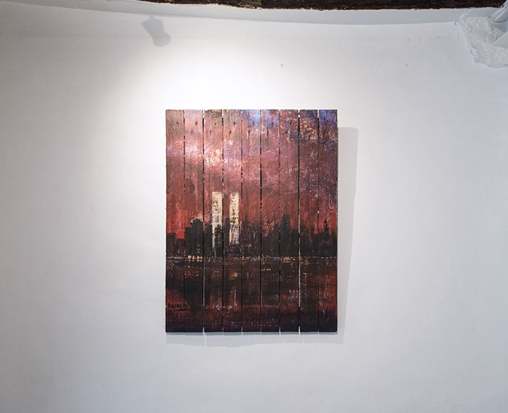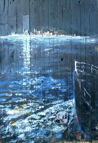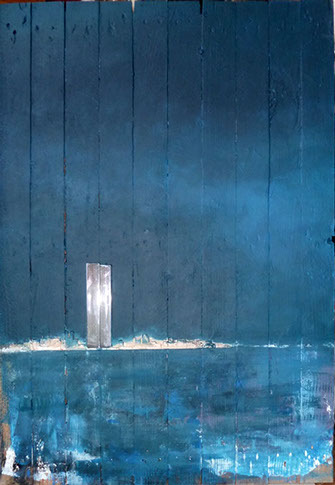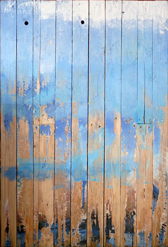 L'occasion se présentant de leur rendre hommage par cette exposition il a bondi et oeuvré, choisissant comme le support des palettes en bois blanc pour le moins usuelles, s'exprimant un peu dans l'esprit non éloigné de certains ex-votos, mais s'excluant de leur dévotion toute confessionnelle, n'en retenant que l'élan initial, source indiscernable, inspiratrice...